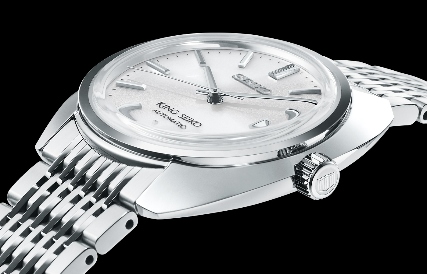 裏ぶたには、キングセイコーを象徴する1960年代当時の「盾」エンブレムを刻印しています。それは、ブランドの誇りと、受け継がれてきた美意識の結晶。過剰に主張せずとも、長く時を刻む覚悟が込められています。見えない部分にこそ、本物は宿る。そんな哲学が息づいています。